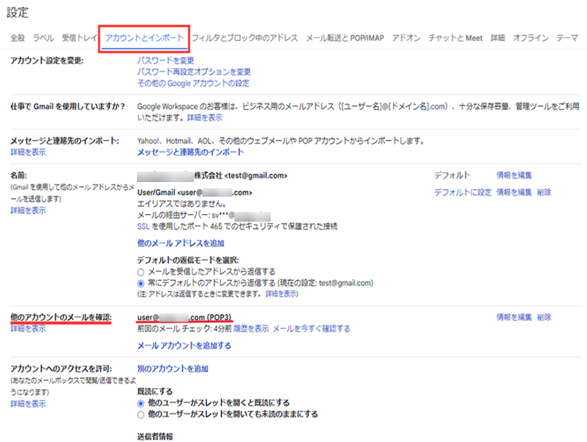 「設定 → アカウントとインポート」にある「他のアカウントのメールを確認」に